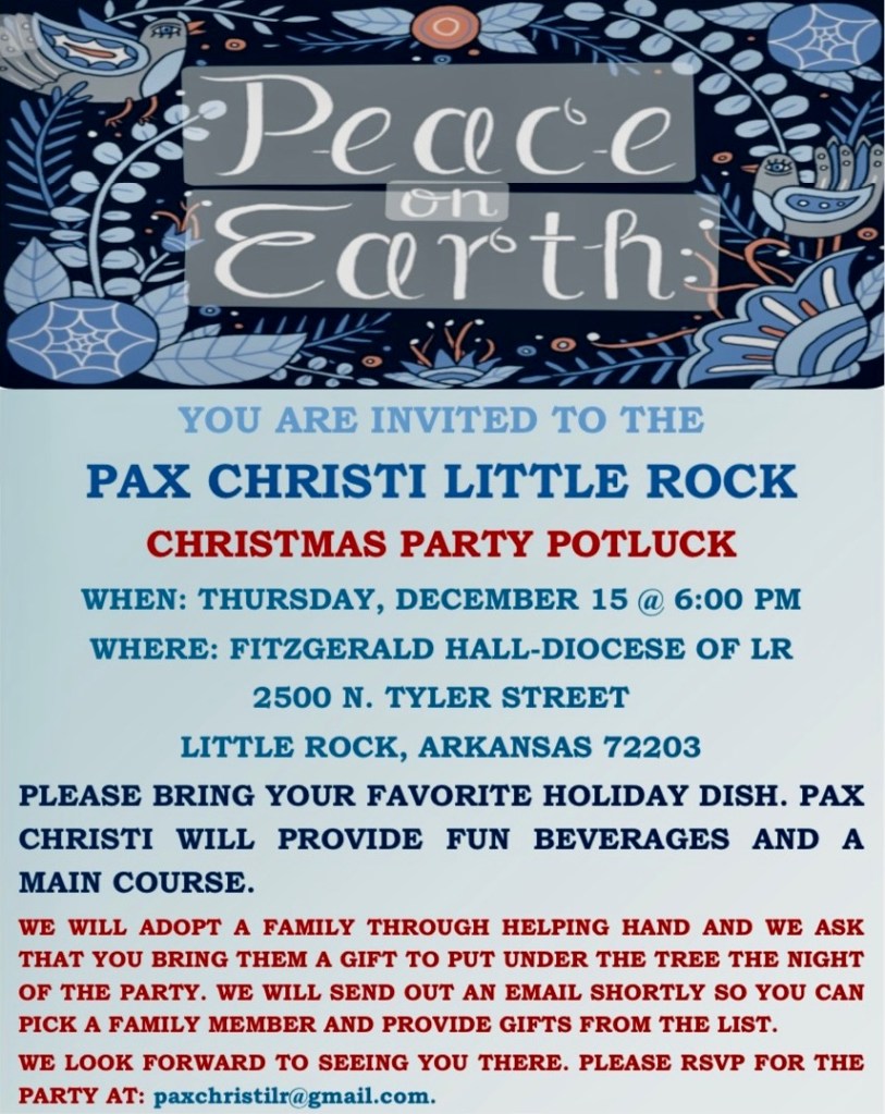 Pax Christi Little Rock’s efforts to follow the model of prayer, study, and action since its founding is being feature on a retrospective video created by Pax Christi USA. Follow the links to the YouTube presentation.